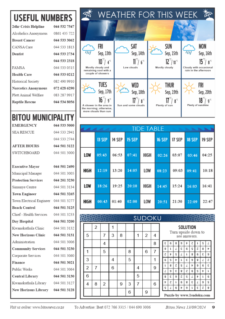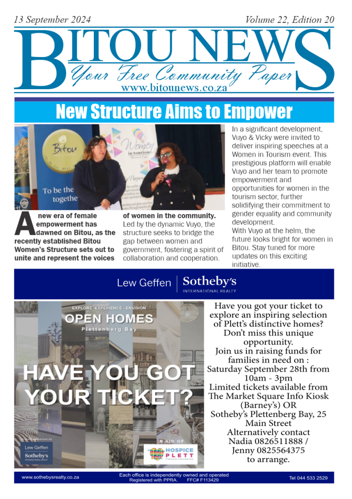 Bitou News Volume 22, Edition 20, 13 September 2024