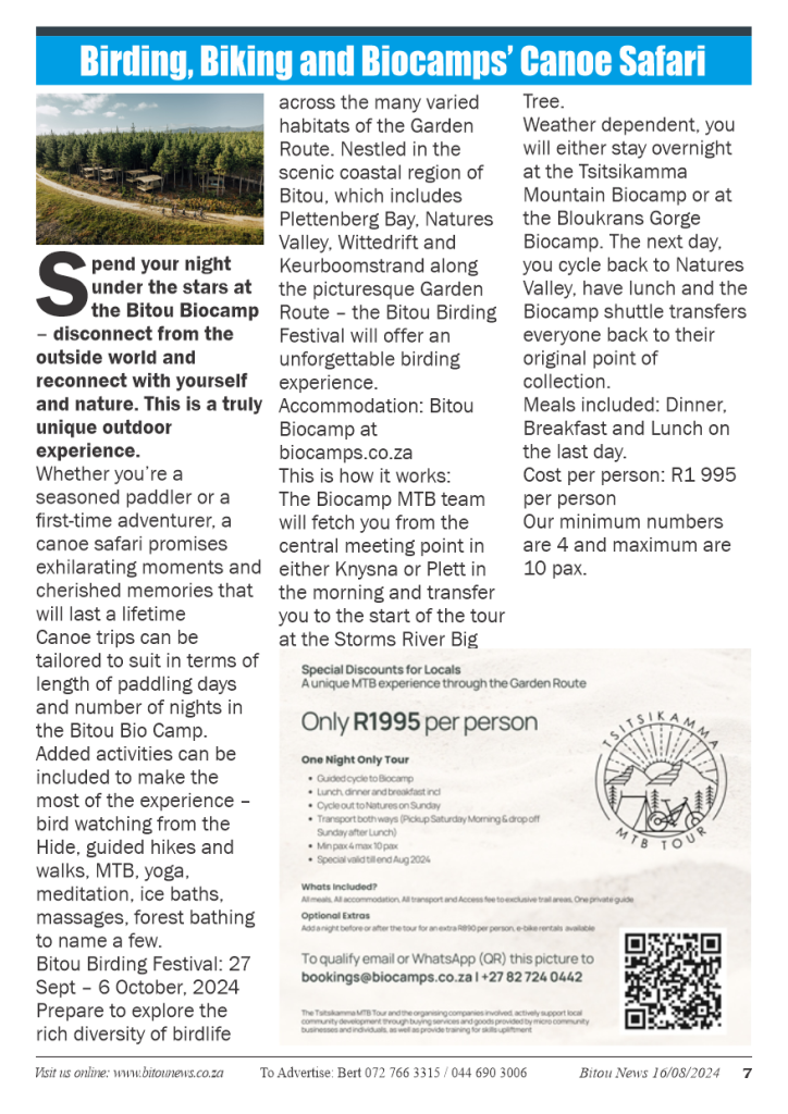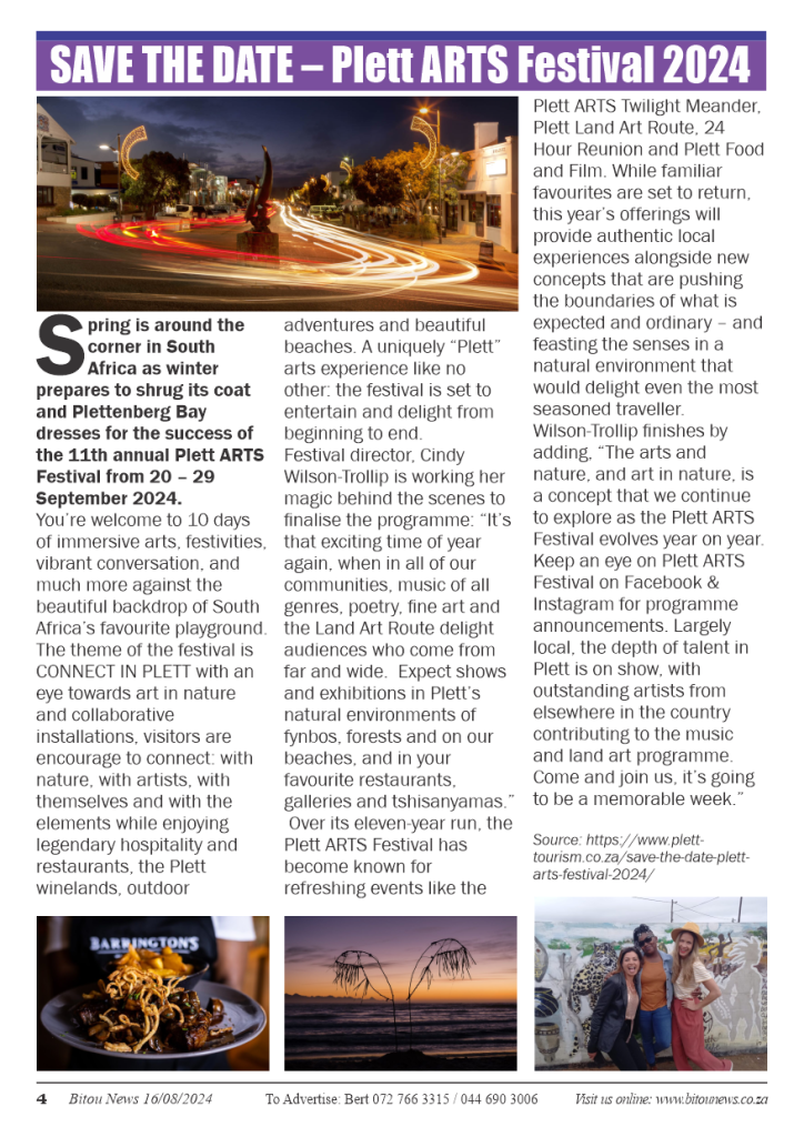 Bitou News Volume 22, Edition 18, 16 August 2024