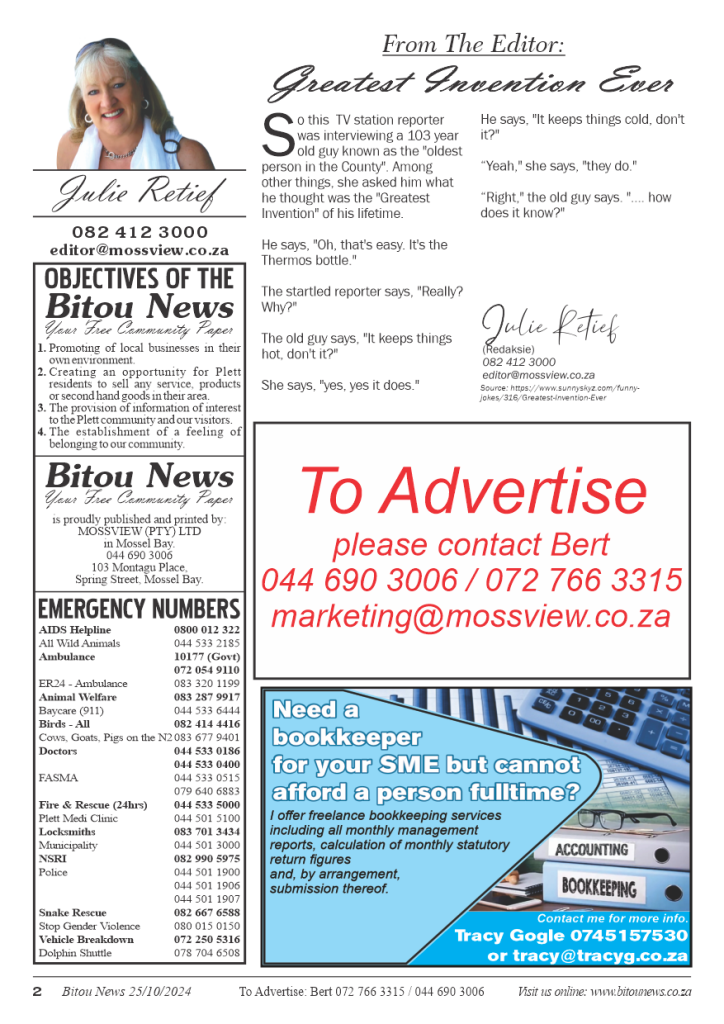 Bitou News Volume 22, Edition 23, 25 October 2024